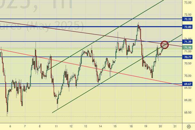 Продажа: нет. Кто в позиции от 72.00 и 71.39, держите стоп на 71.80. Цель: 60.00.