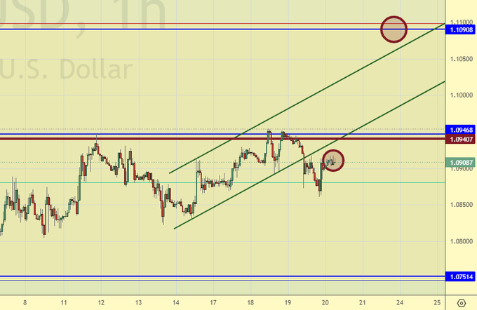 Продажа: сейчас (1.0908). Стоп: 1.0940. Цель: 1.0550. При подходе к 1.1100 продавать обязательно.