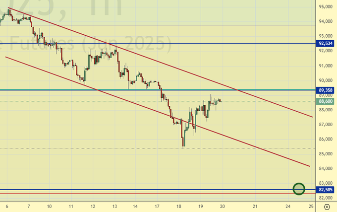 Покупка: при подходе к 83000. Стоп: 81000. Цель: 115000. Кто в позиции от 88250, перенесите стоп на 86400. Цель: 115000.