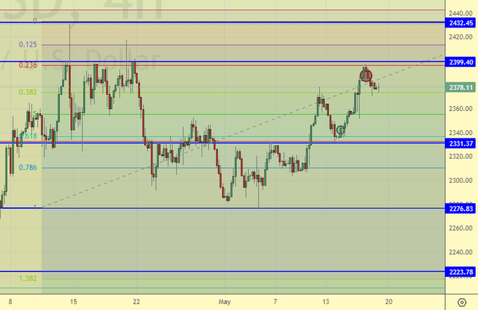 Продажа: нет. Кто в позиции от 2387, держите стоп на 2403. Цель: 2020!