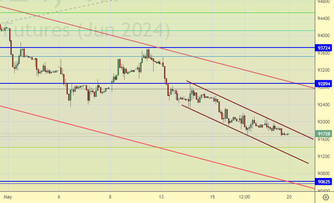 Продажа: нет. Кто в позиции от 93.04, перенесите стоп на 91.30. Цель: 89.40 (86.00).