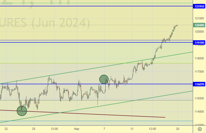 Покупка: нет. Кто в позиции от 114100 и 116290, перенесите стоп на 118800. Цель: 126000.
