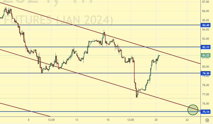 Продажа: при касании 82.00. Стоп: 82.30. Цель: 76.00.
