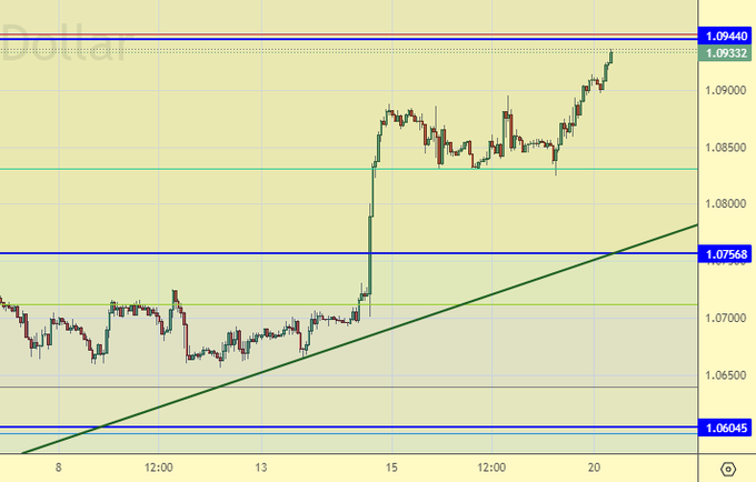 На текущих уровнях можно фиксировать прибыль от лонга и переворачиваться вниз. Вряд ли мы сможем подняться выше 1.0970 без коррекции. До заседания ФРС еще 10 дней. Пока нет причин для того, чтобы ставить на доллар, так как дальше ставка подниматься не будет, но у нас есть время для того чтобы нарисовать откат перед новой волной роста.
