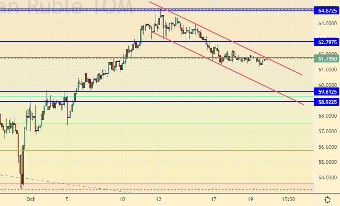 Продолжим ждать спуска к 60.00 для того, чтобы купить. Текущие уровни также интересны для входа в лонг при условии, что риск будет осознанным и будет контролироваться.