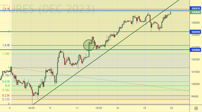Покупка: нет. Кто в позиции от 103000, перенесите стоп на 105600. Цель: 115000 (пересмотрена).