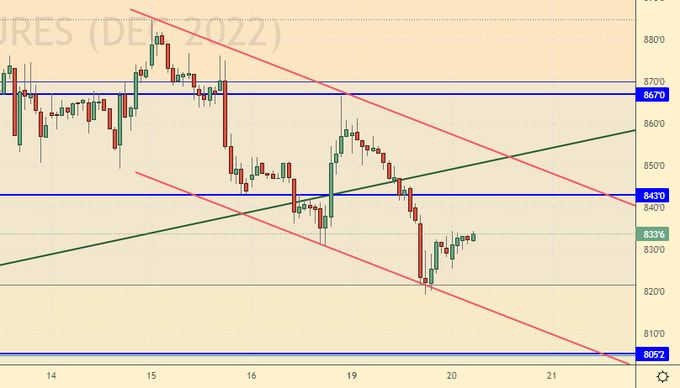 Продажа: нет. Кто в позиции от 870.0 и 840.0, перенесите стоп на 860.0. Цель: 750.0.