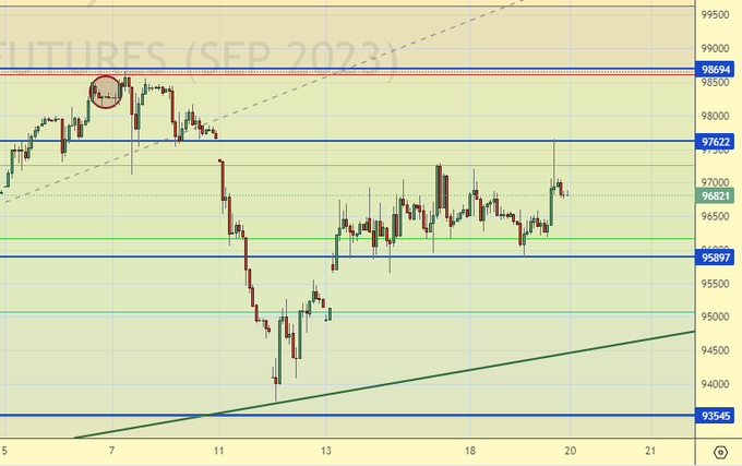 Продажа: нет. Кто в позиции от 97.00, держите стоп на 97.60. Цель: 90.00.