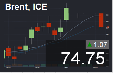 Цена в долларах за баррель. Для пересчета в доллары за тонну нефти марки Brent, необходимо цену умножить на 7,59.