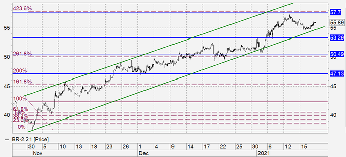 Продажа: нет. Кто в позиции от 56.40, держите стоп на 56.60. Цель: 47.30.