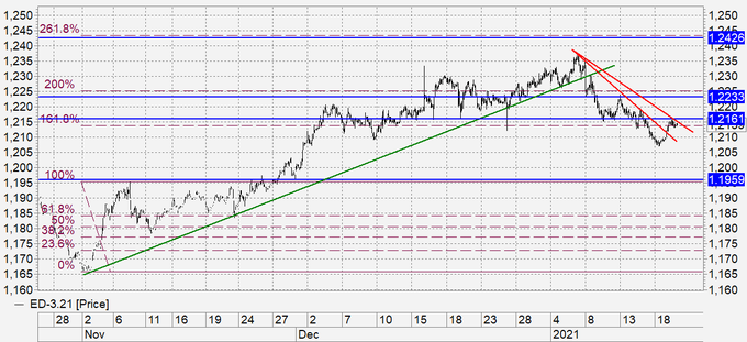 Продажа: нет. Кто в позиции от 1.2225 и 1.2200, держите стоп на 1.2200. Цель: 1.1970.