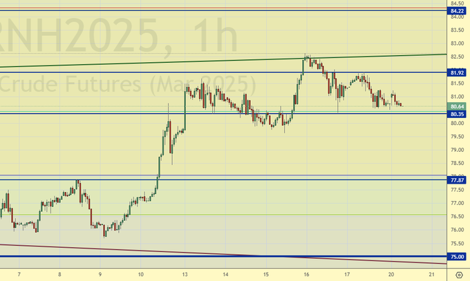 Продажа: при подходе к 84.20. Стоп: 84.70. Цель: 74.00. Или сейчас (80.64). Стоп: 81.30. Цель: 75.00.