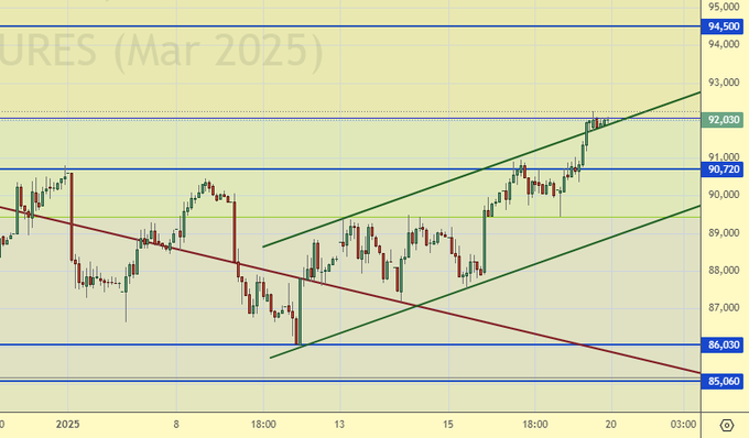 Любое дуновение теплого ветра из-за океана приведет к росту. Верования в какой-то справедливый Запад очень сильны, еще со времен жвачки и джинсов. Нас ждет разочарование. Как и всегда. Но пока, признаем, возможен ход к 95000.