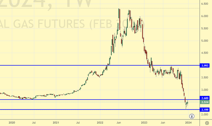 Сценарий роста: рассматриваем февральский фьючерс, дата экспирации 29 января. Видим, что газ в США дешев, что означает очень простую вещь: Европа получит его столько сколько захочет.