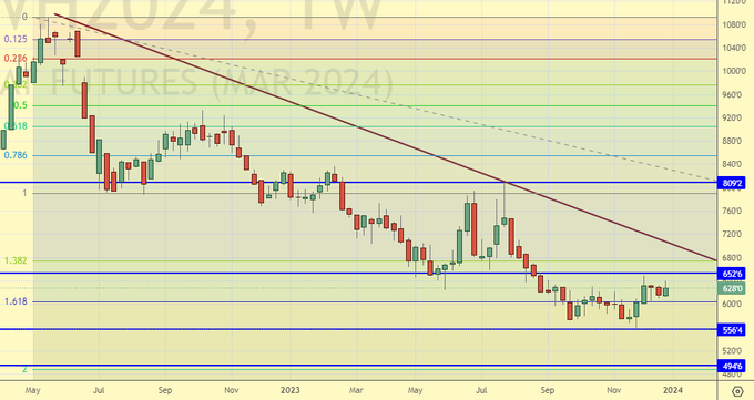 Если логистических проблем не будет, то нас ждет умеренный подъем цен на пшеницу и кукурузу к весне в размере 10 – 15% от текущих уровней. А дальше всё будет зависеть от прогнозов на сезон 24/25 которые сформируются к началу мая. Два года подряд по зерновым получаем отличные урожаи, и в России, и в мире, что не дает фундаментального повода спекулянтам для сильного разгона цен вверх.