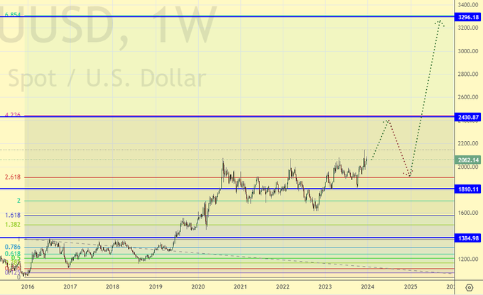 Сценарий падения: при подходе к 2100 можно продавать. Этот уровень последнее препятствие для золота. Кто уже вошел, держите шорт. Тут всё очень просто: если уйдем выше 2100, то полетим на 2400.