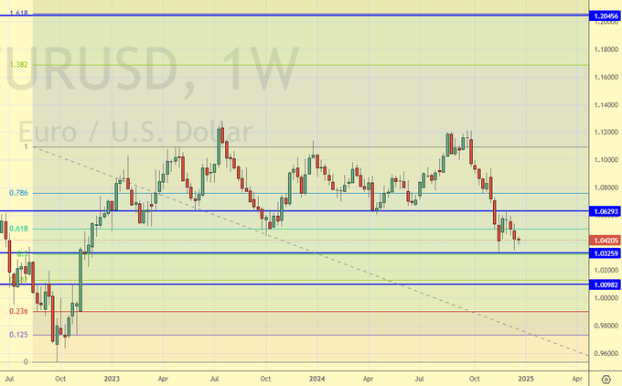 В рамках данного обзора смотрим на графики на которых одна свеча равна одной неделе.