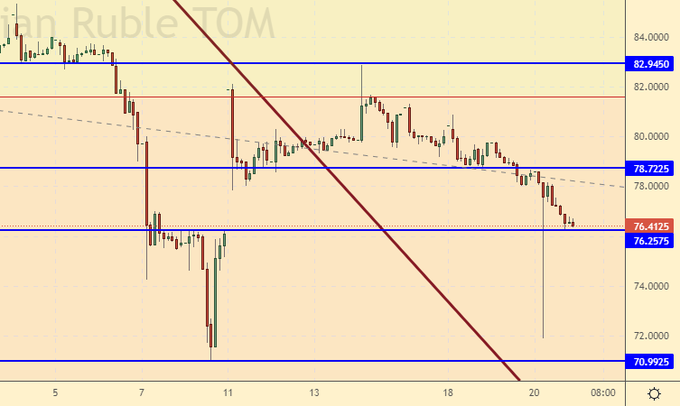 Доллары девать некуда. Частичным решением проблемы мог бы стать акт со стороны ЦБ о возможности продавать гражданам валюту в любом объеме, но есть две проблемы, первая, с российских карточек нельзя платить в долларах поэтому безналичные доллары не нужны, вторая, в страну не завозятся наличные деньги и уйти со счета в кэш вы не сможете. Это тупик. Так мы можем и на 70.00 прийти и на 7-мь. Что будет делать ЦБ не ясно.