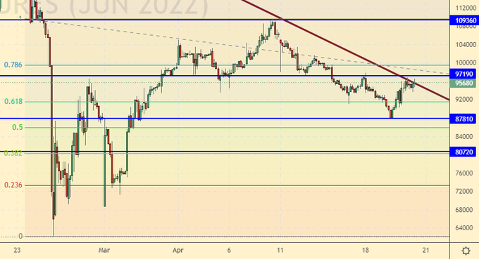 Продажа: нет. Кто в позиции от 100000, держите стоп на 101000. Цель: 80000 (50000).