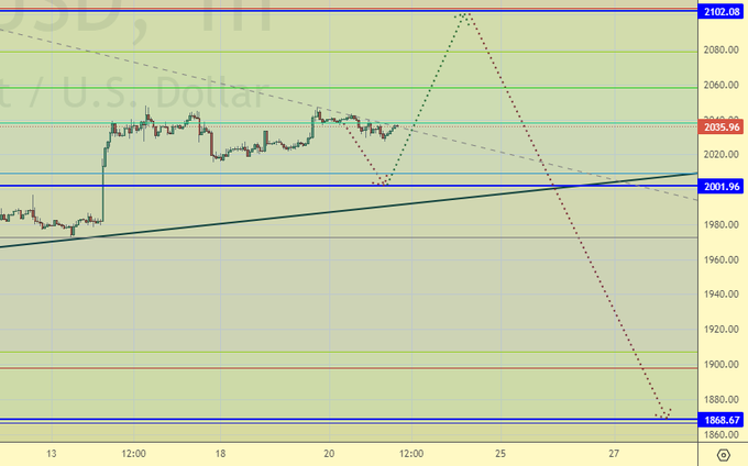 Продажи от 2100 будут наиболее интересными в данной ситуации. Откат к 2000 можно использовать для покупок.
