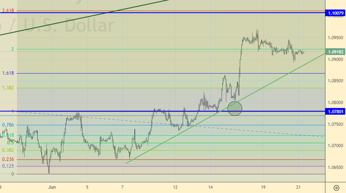 Евро остается высоко и скорее всего будет претендовать на ход к 1.1000. Только после достижения данной отметки начнется откат, который приведет к падению на 1.0800. Индекс доллара приостановит своё падение, но доллар не сможет оставаться сильным именно против евро.