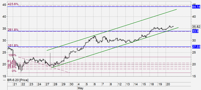 Покупка: нет. Кто в позиции, перенесите стоп на 33.70. Цель: 43.70.