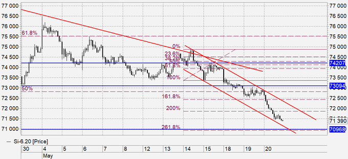 Продажа: нет. Кто в позиции, перенесите стоп на 71.73. Цель: 69.20.