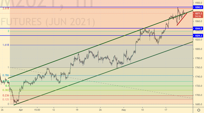 Есть очень большой соблазн продать здесь. Подождем падения рынка ниже 1870 и войдем в шорт. Если американцы подпишут новое соглашение с Ираном, то это позволит надеяться, что Вашингтон в перспективе и вовсе перестанет лезть со своими солдатами на чужие территории. Скорее всего работа будет вестись с правящими кругами. Смена поведения предполагает снижение глобальной напряженности. Значит будет меньше поводов уходить в золото.