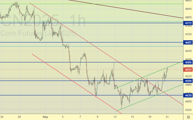 Кукуруза (майский контракт, CME Group, исполнение 14.07.2025)