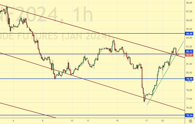 Рынок продолжает двигаться в район 85.00. Никто не хочет делать крупных ставок до того, как пройдет заседание ОПЕК. Отметим, что если не будет заявлено о дополнительном сокращении добычи, то «бледное лицо Си» на саммите в США способно утащить рынок ниже 75.00 в перспективе.