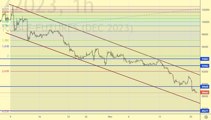 Продажа: при подходе к 96.40. Стоп: 97.40. Цель: 88.00.