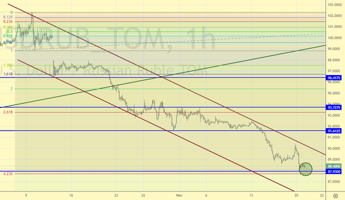 На споте пришли к 88.00. Будем покупать. Искусственность курса заставляет нас предполагать не самое радужное развитие событий в любой момент времени. Контроль за валютной выручкой – это хорошо, главное, чтобы и корова не сдохла, после того как у неё начали зеленую траву отнимать.