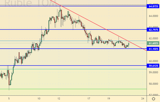 За день ничего не поменялось. Продолжим ждать спуска к 60.00 для того, чтобы купить. Текущие уровни также интересны для входа в лонг при условии, что риск будет осознанным и будет контролироваться. Кто вошел вчера может добавить к лонгам.