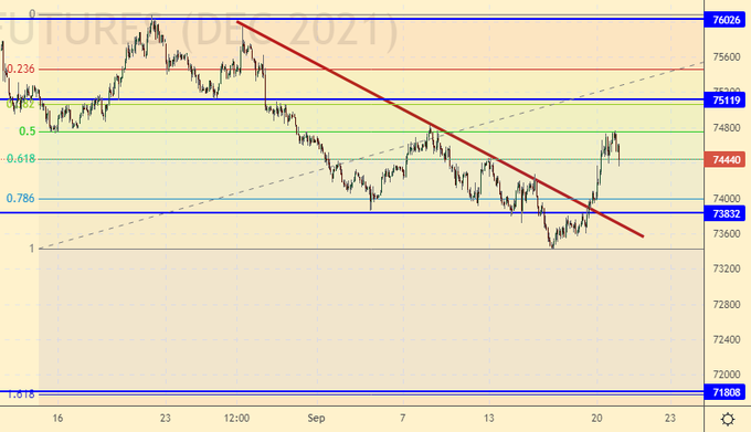 Покупка: после роста выше 75.10. Стоп: 74.10. Цель: 76.00 (95.00!).