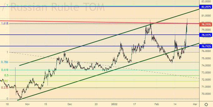 Крайне вероятно, что на этой неделе ЦБ РФ будет держать курс рубля к доллару ниже 80.00 не допуская сильного ослабления курса. Затем может быть применено лекарство Эрдогана против спекулянтов, когда курс национальной валюты укрепляется за один час на 70%, после чего с рынка вымывает всех, кто почему-то сильно ненавидел рубль.