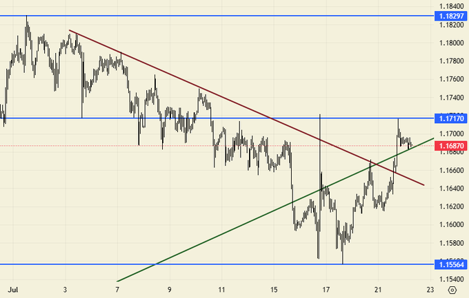Продажа: возможна. Кто в позиции от 1.1610, держите стоп на 1.1725. Цель: 1.1270.