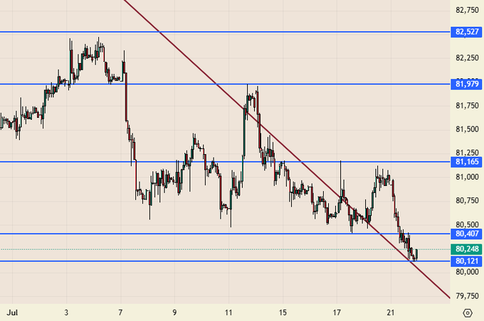 Покупка: в случае роста выше 82100. Стоп: 81100. Цель: 120000?! При подходе 75000 (а будет ли подход?). Стоп: 73000. Цель: 85000. Сейчас (80248). Стоп: 79900. Цель: 100000 (1 000 000 миллион?! Утренняя шутка.)