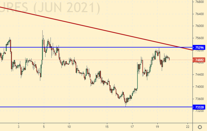 Покупка: после роста выше 74.50. Стоп: 73.60. Цель: 80.00. Кто в позиции от 73.80, держите стоп на 73.60. Цель: 80.00.