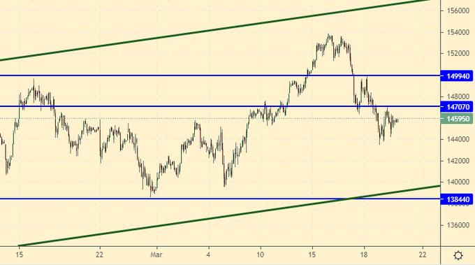 Продажа: при откате к 149000. Стоп: 151000. Цель: 100000. Кто в позиции от 148000, держите стоп на 151000. Цель: 100000.