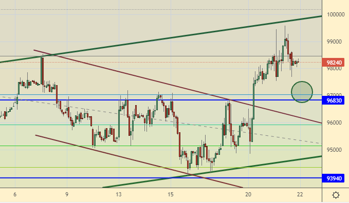 Покупка: при откате к 97200. Стоп: 96200. Цель: 112000.