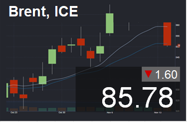 Цена в долларах за баррель. Для пересчета в доллары за тонну нефти марки Brent, необходимо цену умножить на 7,59.