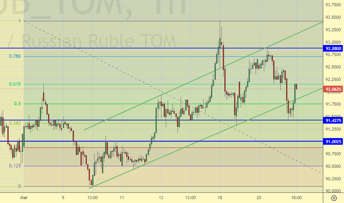 Интересная попытка пробиться ниже 91.50. Только пока она не увенчалась успехом. Очень тяжело говорить об укреплении рубля против доллара в последние дни. Сегодня у нас заседание ЦБ, которое может преподнести сюрприз. Даже если Набиуллина поднимет ставку до 18%, то всё равно это не создаст предпосылок для укрепления национальной валюты.