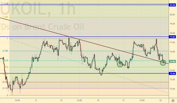 Покупка: нет. Кто в позиции от 75.00 и 76.70, перенесите стоп на 74.70. Цель: 90.00.