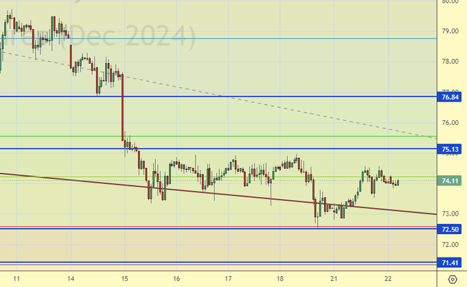 Покупка: нет. Кто в позиции от 73.43, перенесите стоп на 72.90. Цель: 90.00?!