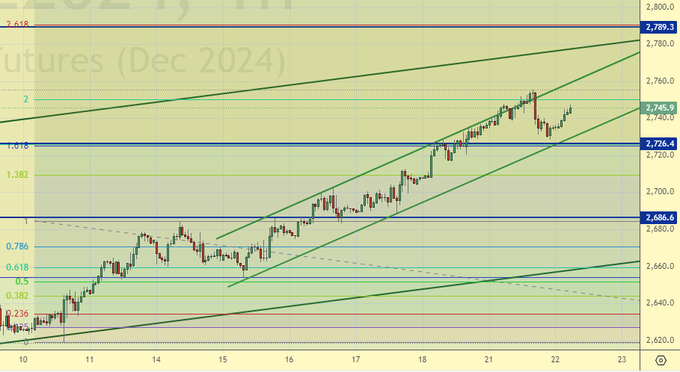 Читая наши прогнозы, можно было взять ход вверх по золоту от 2683 до 2740.