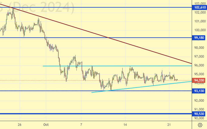 Покупка: нет. Кто в позиции от 94501, держите стоп на 94100. Цель: 104000.