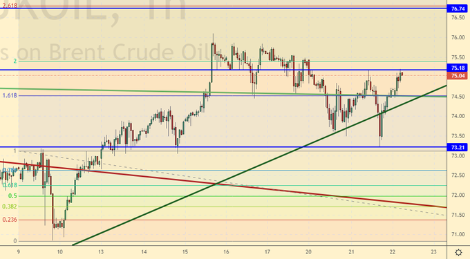 Покупка: после роста выше 75.30. Стоп: 74.10. Цель: 76.70 (95.00!). Кто в позиции от 75.10, перенесите стоп на 74.30. Цель: 76.70.