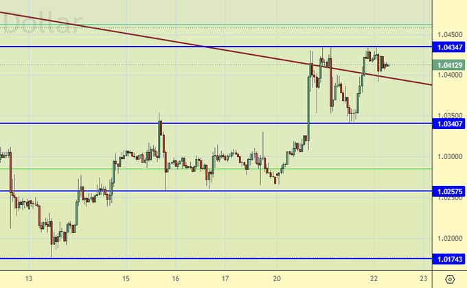 Продажа: нет. Кто в позиции от 1.0394, держите стоп на 1.0444. Цель: 0.9900.