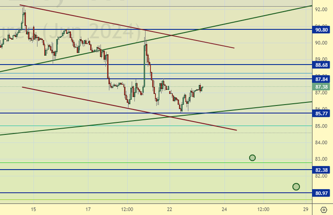 Продажа: при подходе к 89.00 Стоп: 90.00. Цель: 81.00.