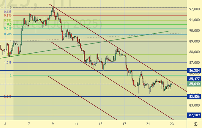 Данная пауза в пользу быков по рублю. Мы не можем отрасти от 84000, что способно привести к попытке тестирования 78000, какой бы далекой данная цель не казалась. На фоне успехов в политике, это возможный сценарий. Не забываем про заседание ЕЦБ в пятницу.